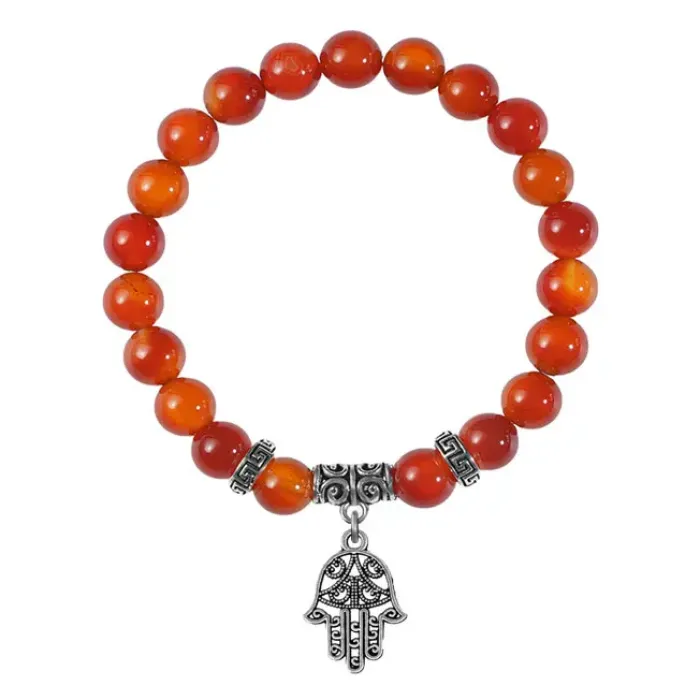 Браслет-амулет Хамса из натурального сердолика с подвеской из бижутерного сплава.