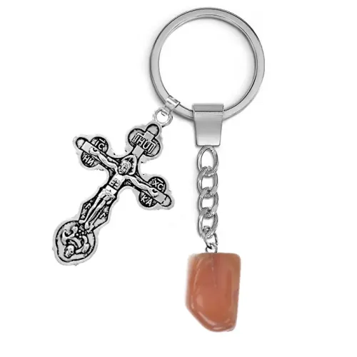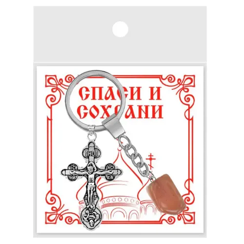 Брелок Крест с нат.камнем Сердолик BKL-01-03