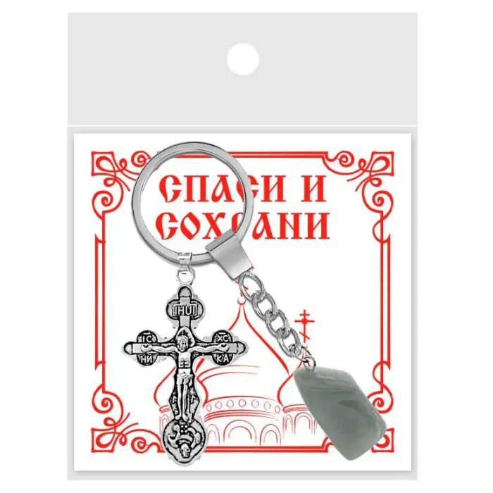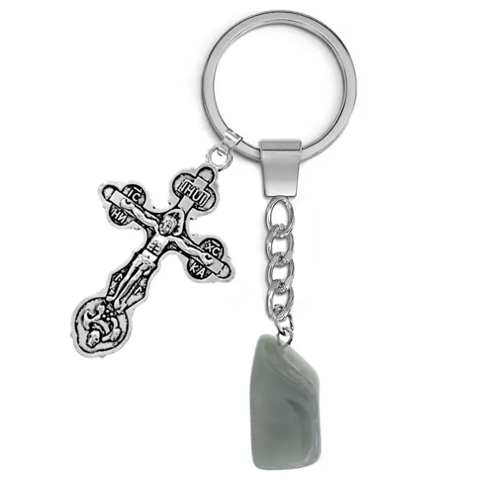 Брелок Крест с нат.камнем Нефрит BKL-01-10