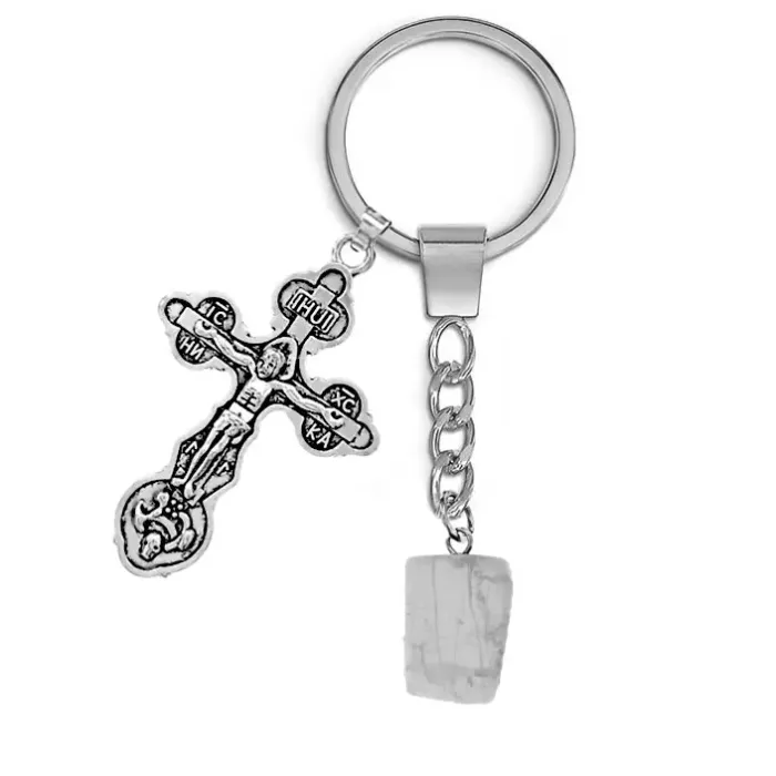 Брелок Крест с натуральным камнем Кахолонг — это стильный аксессуар, который сочетает в себе красоту и символику. Такой брелок может стать отличным подарком для близких или дополнением к личной коллекции.