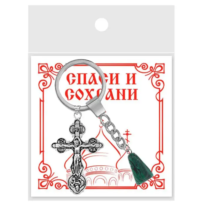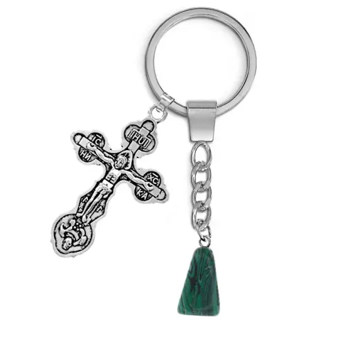 Брелок Крест с синтетическим камнем малахит — это стильный аксессуар, который сочетает в себе красоту и символику. Он станет отличным подарком для тех, кто ценит уникальные вещи и традиции. Каждый камень имеет индивидуальную форму благодаря галтовке, что делает каждый брелок неповторимым.