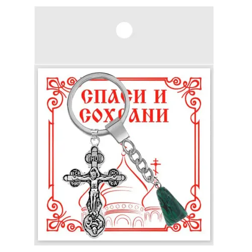 Брелок Крест с синт.камнем Малахит BKL-01-13