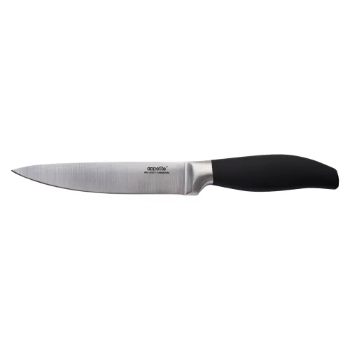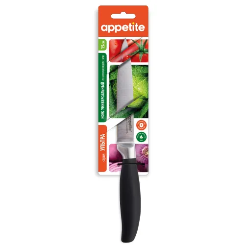 Универсальный нож TM Appetite предназначен для нарезки овощей, фруктов и мяса. Инструмент изготовлен из нержавеющей стали, что обеспечивает устойчивость к коррозии и длительное сохранение режущих свойств.