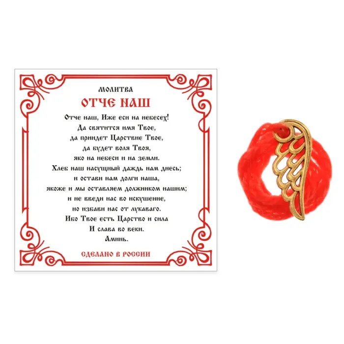 Красная нить с подвеской "Крыло ангела" — это стильное украшение и мощный оберег, символизирующий защиту и удачу. Изготовленная из 100% шерсти, она обладает длиной около 35 см и оснащена подвеской из бижутерного сплава с покрытием под золото. Упакована в прозрачный пакет с подвесом, в комплект входит вкладыш. Красная нить на запястье традиционно используется для привлечения счастья и успеха, что делает её идеальным подарком для близких или себя.
