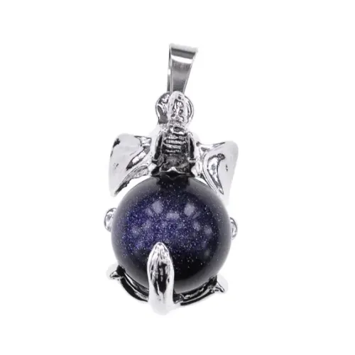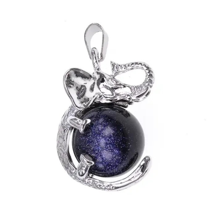 Кулон Слон с шаром из синт.камня Синий авантюрин BJK206-01