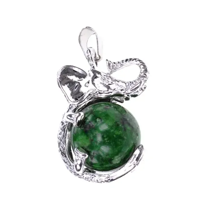 Кулон Слон с шаром из синт.камня Цоизит BJK206-07