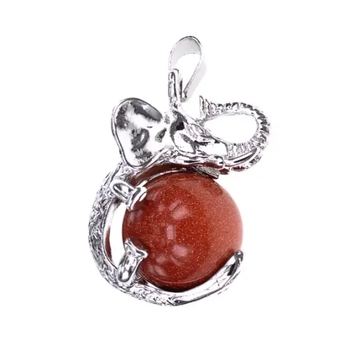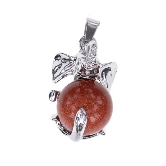 Кулон в виде слона с шаром из синтетического камня коричневый авантюрин.