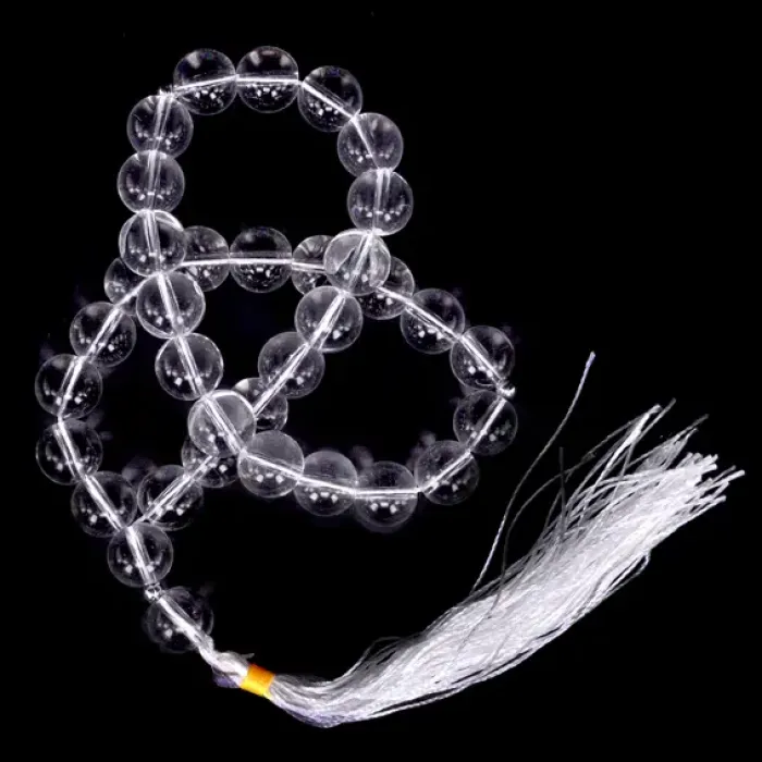 Чётки из синтетического камня, имитирующего горный хрусталь, с бусинами диаметром 12 мм.