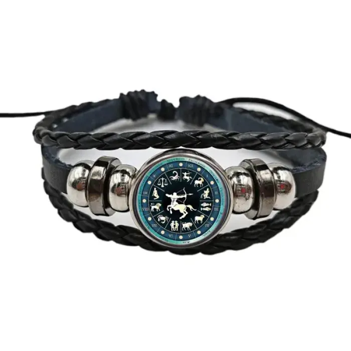 Кожаный браслет с символикой знаков зодиака — это стильный аксессуар, который подчеркивает индивидуальность и приверженность астрологии. Браслет выполнен из качественной кожи и металла с покрытием под серебро, что обеспечивает долговечность и эффектный внешний вид.