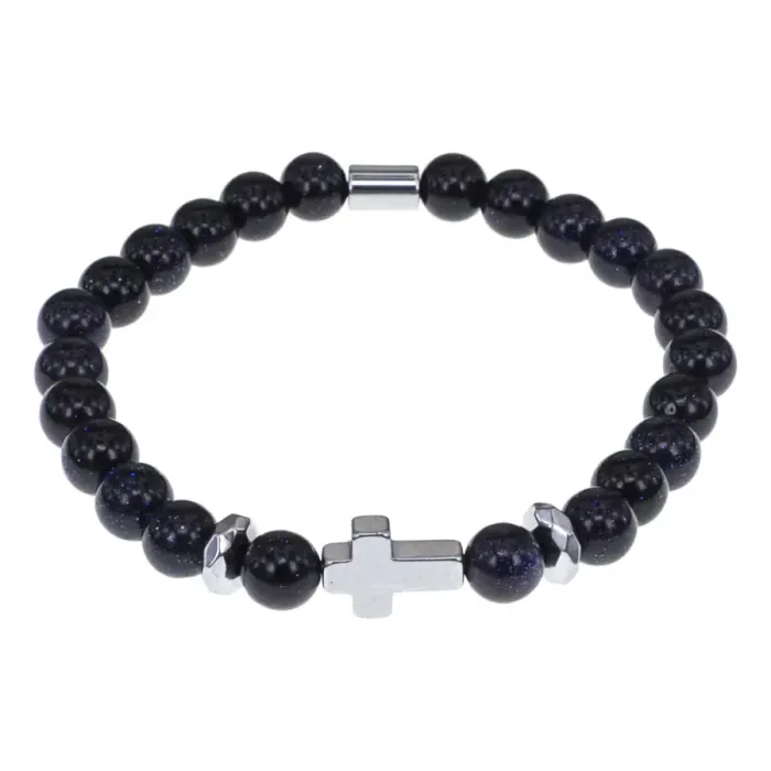 Христианский браслет Крест с синт.камнем Синий авантюрин 8мм BSH-14-02