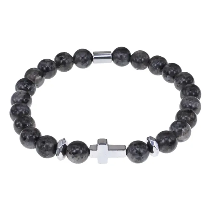 Христианский браслет Крест с нат.камнем Лабрадор 8мм BSH-14-08