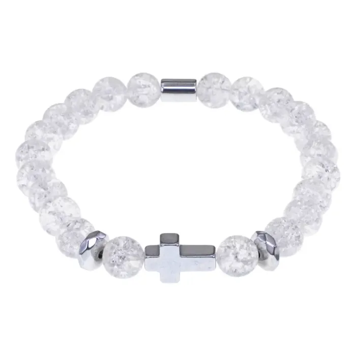 Стрейч-браслет, выполненный из бусин синтетического сахарного кварца и немагнитного гематита, станет символом веры и духовности. Этот стильный аксессуар идеально подходит для повседневной носки и особых случаев.