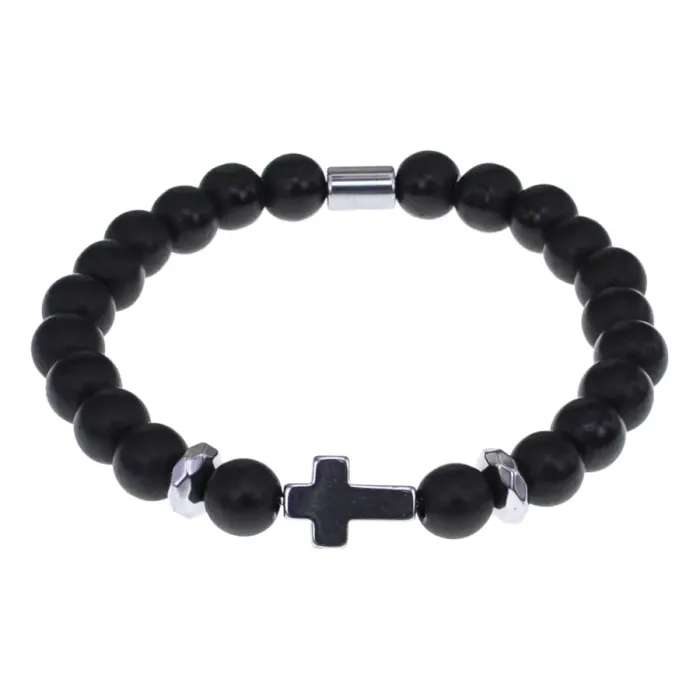 Христианский браслет Крест с синт.камнем Шунгит 8мм BSH-14-24