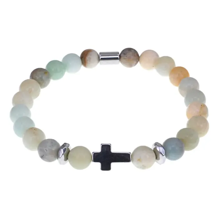 Христианский браслет Крест с нат.камнем Амазонит 8мм BSH-14-26