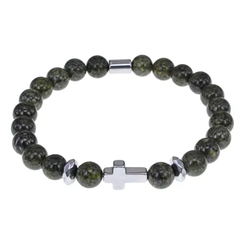 Христианский браслет Крест с нат.камнем Змеевик 8мм BSH-14-29
