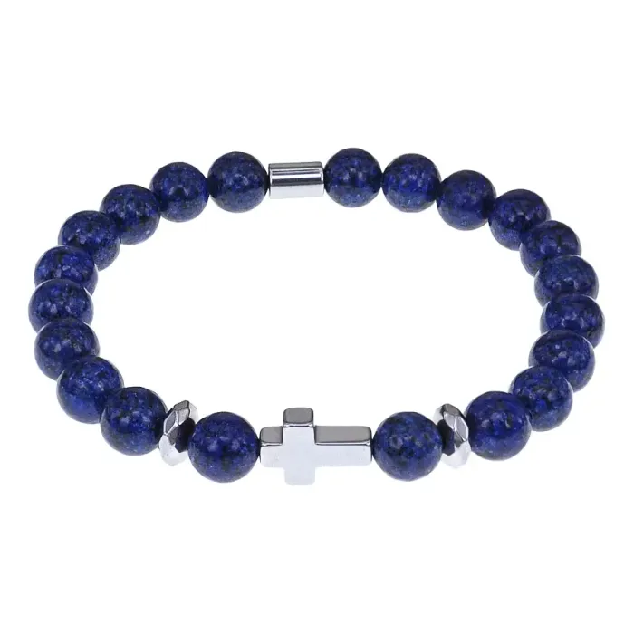 Христианский браслет Крест с нат.камнем Лазурит 8мм BSHE-14-10