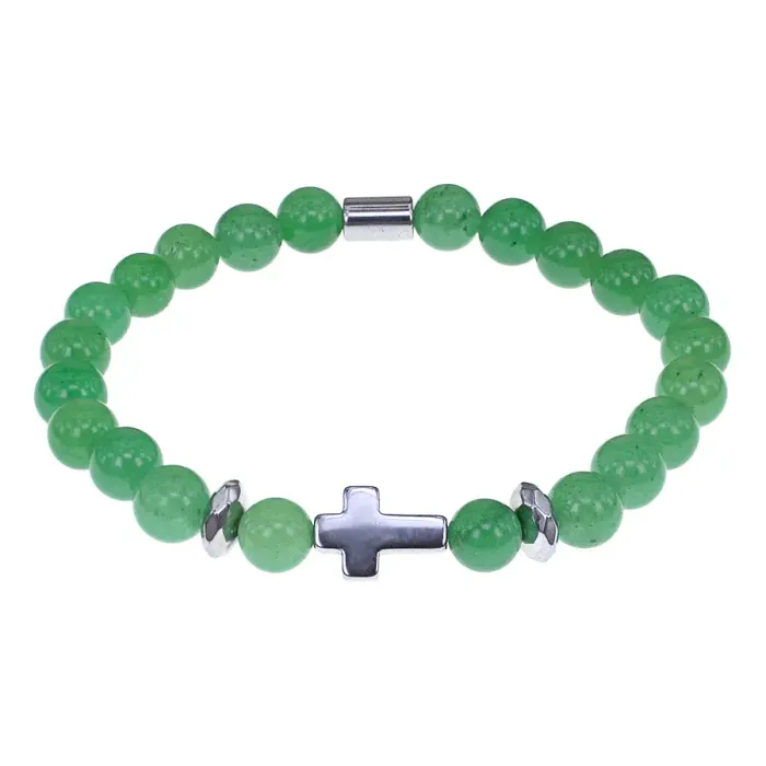 Христианский браслет Крест с нат.камнем Нефрит 8мм BSHE-14-13