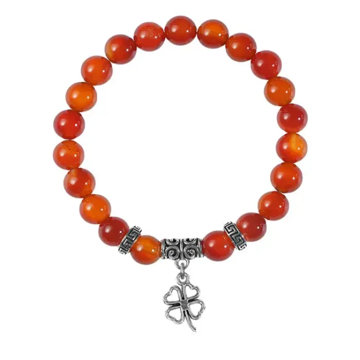Браслет из натурального сердолика с подвеской в виде клевера.