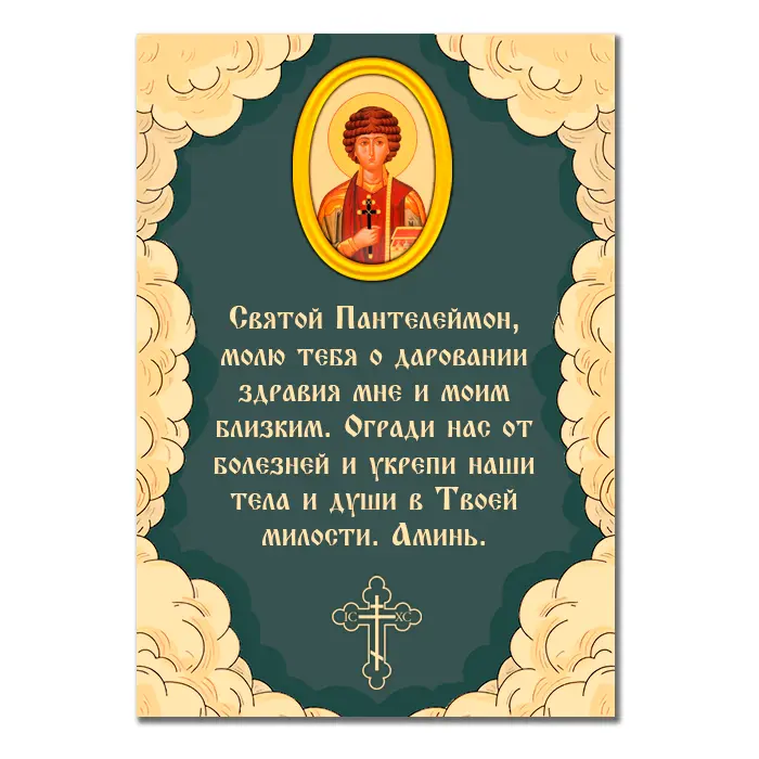 Виниловый магнит с молитвой Прошение Святому Пантелеймону о здравии MI143