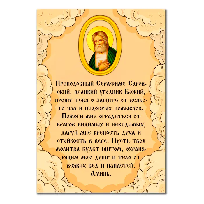 Виниловый магнит с молитвой Серафиму Саровскому о защите от зла MI146