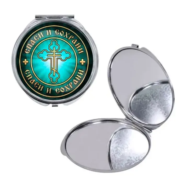 Круглое складное зеркало, цвет серебро, Спаси и Сохрани C1001016