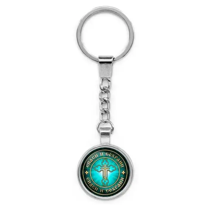 Круглый брелок «Спаси и Сохрани» — это стильный аксессуар, который сочетает в себе красоту и символику. Он выполнен из бижутерного сплава с покрытием под серебро и стекла, что придаёт ему элегантный вид. Размер брелка вместе с кольцом и цепочкой составляет 28х95 мм. Изображение защищено выпуклой стеклянной линзой, что обеспечивает долговечность и яркость изображения.