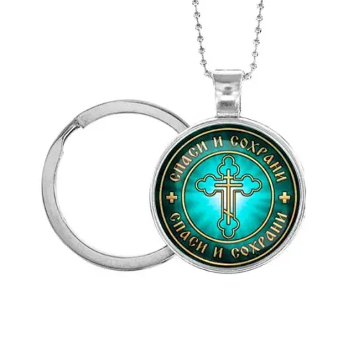 Кулон-брелок "Спаси и Сохрани" — это стильный аксессуар, который сочетает в себе красоту и символику. Он выполнен из бижутерного сплава с покрытием под серебро и стекла. Этот кулон не только привлекает внимание своим дизайном, но также несет в себе глубокий смысл защиты и благополучия.