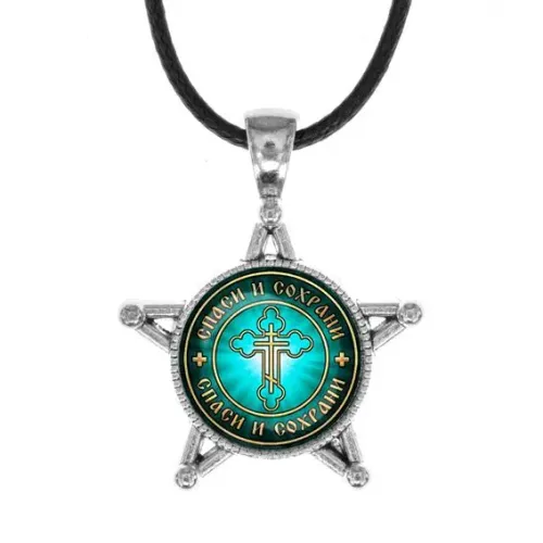 Звезда-кулон «Спаси и Сохрани» — это не только стильный аксессуар, но и символ защиты и благополучия. Изготовленный из бижутерного сплава под серебро и стекла, этот кулон станет прекрасным дополнением к любому образу.