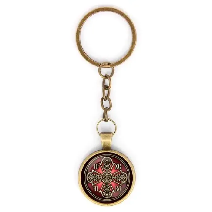 Круглый брелок «Иисус Победитель» — это не только стильный аксессуар, но и символ веры и надежды. Он выполнен из бижутерного сплава с покрытием под бронзу и стекла, что придаёт ему особую прочность и элегантный вид.