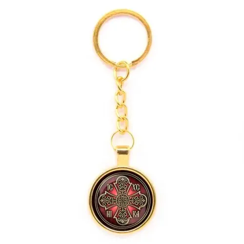 Круглый брелок «Иисус Победитель» — это стильный аксессуар с глубоким символическим значением. Он станет не только практичным элементом для ключей, но и напоминанием о вере и надежде. Изготовленный из бижутерного сплава с покрытием под золото и стекла, этот брелок отличается прочностью и элегантным внешним видом.
