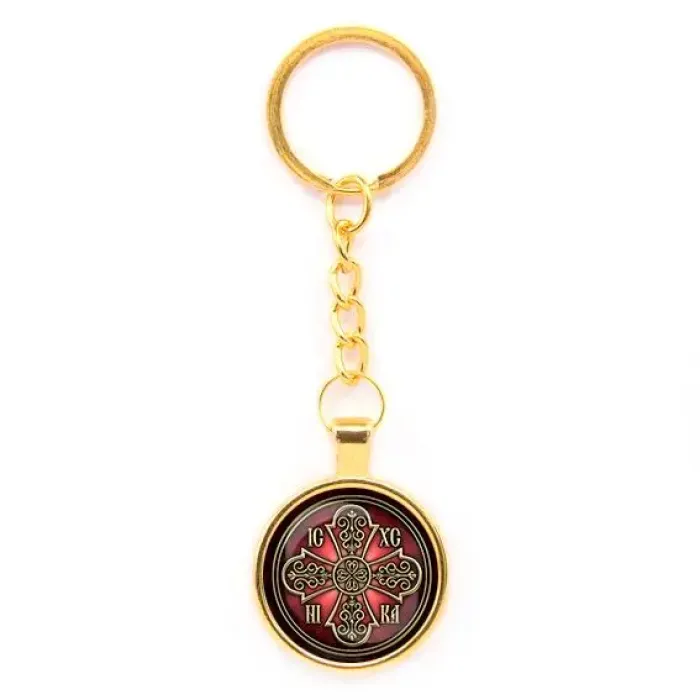 Круглый брелок, цвет золото, с цепочкой, Иисус Победитель C1002020