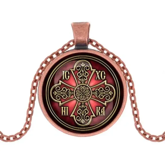 Кулон «Иисус Победитель» — это не только стильное украшение, но и символ веры и надежды. Изготовленный из бижутерного сплава с покрытием под медь и стекла, он станет прекрасным дополнением к любому образу.
