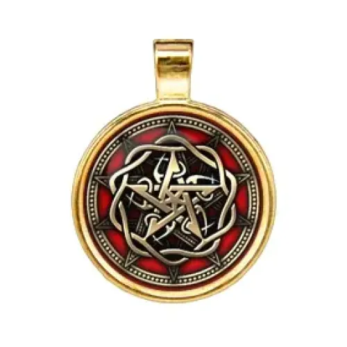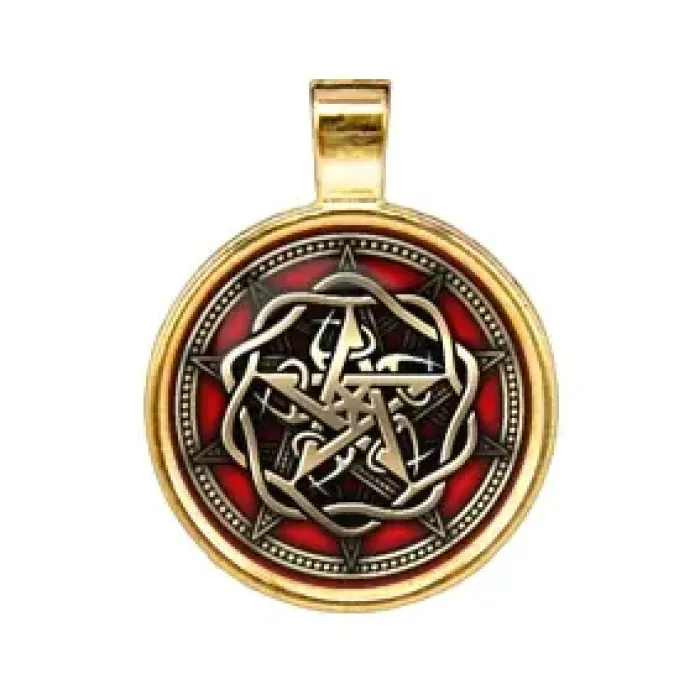 Амулет Пентаграмма — мощный защитный символ, который традиционно используется для контроля над сверхъестественными силами и защиты от зла, черной магии и колдовства. Этот амулет диаметром 28 мм выполнен из бижутерного сплава с покрытием под золото, что придаёт ему элегантный вид. В комплект входит чёрный шнурок с застёжкой, а также упаковка в полипропиленовый пакетик с отверстием под еврокрючок и вкладышем с описанием. Пентаграмма является важным элементом в различных культурах, олицетворяя защиту и гармонию.