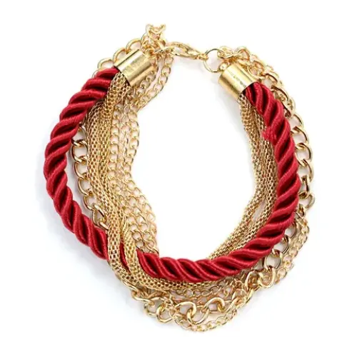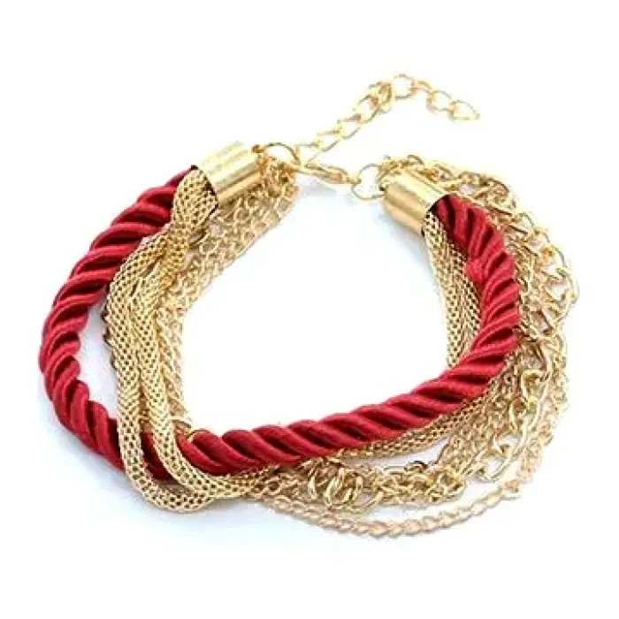 Браслет с цепочками и шнурком, цвет красный BS179-2