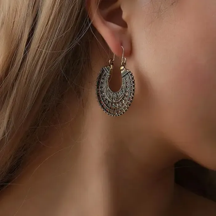 Серьги из бижутерного сплава с бронзовым покрытием, выполненные в технике филиграни.