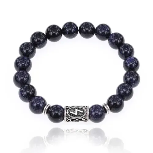 Браслет с руной Соулу и синт.камнем Синий авантюрин BSRM-01-02