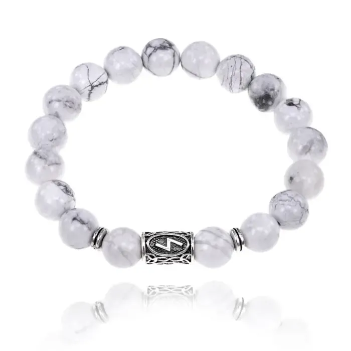 Браслет с руной Соулу и нат.камнем Кахолонг BSRM-01-07