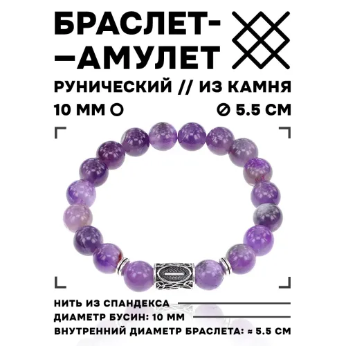 Стрейч-браслет с руной Иса и натуральным камнем аметистом.