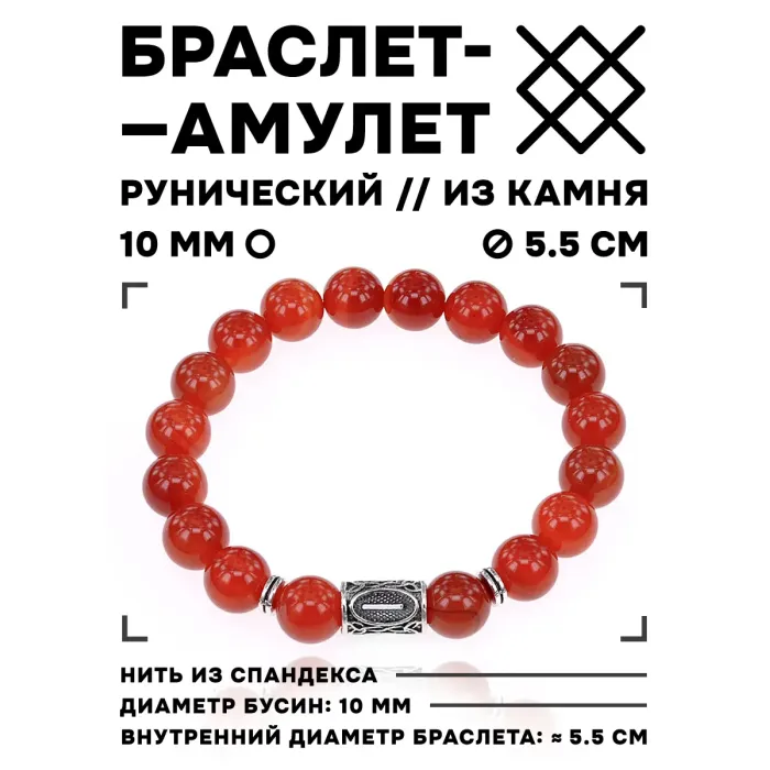 Стрейч-браслет с руной Иса и бусинами из натурального сердолика.