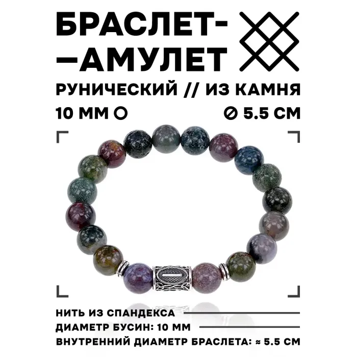 Стрейч-браслет с руной Иса и бусинами из яшмы.