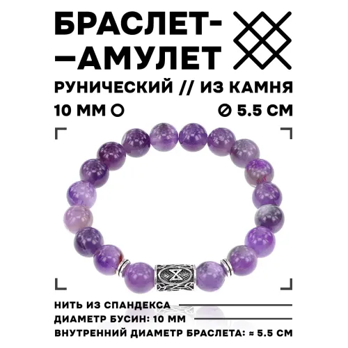 Стрейч-браслет с руной Дагаз и бусинами из натурального аметиста.