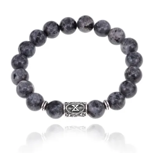 Браслет с руной Дагаз и нат.камнем Лабрадор BSRM-03-08