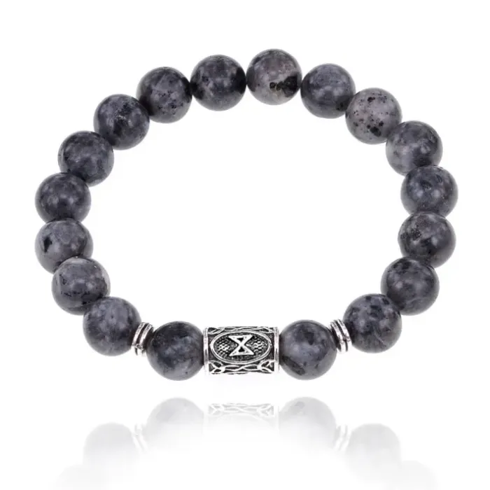 Стрейч-браслет с руной Дагаз и бусинами из натурального лабрадора.