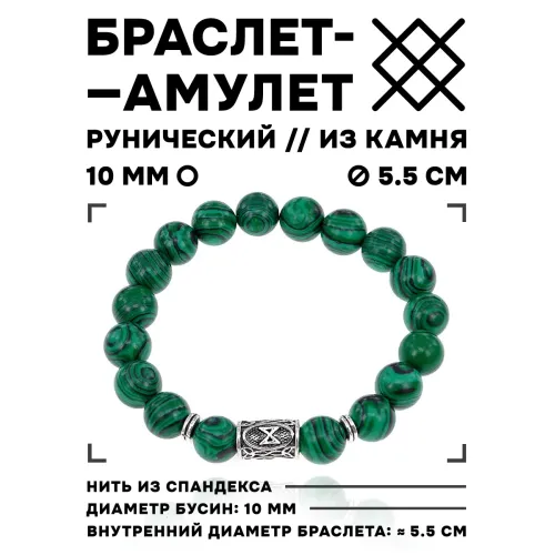 Браслет с руной Дагаз и синт.камнем Малахит BSRM-03-12