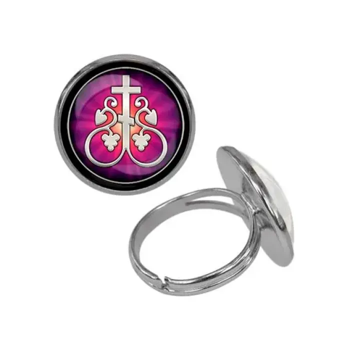 Безразмерное кольцо с изысканным изображением креста и виноградной лозы под выпуклой стеклянной линзой. Это украшение символизирует жизнь и процветание, что делает его идеальным подарком для близких или как элемент личного стиля. Изготовлено из бижутерного сплава с покрытием под серебро, что обеспечивает долговечность и привлекательный внешний вид. Диаметр изображения составляет 20 мм, а форма кольца позволяет комфортно носить его в любое время дня. Стекло добавляет дополнительный блеск и элегантность этому аксессуару.