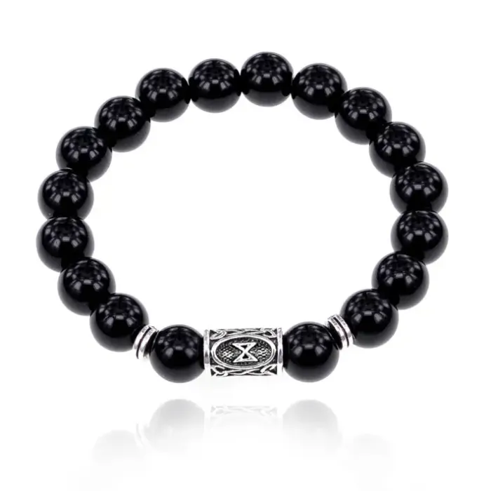 Браслет с руной Дагаз и нат.камнем Черный агат BSRM-03-23