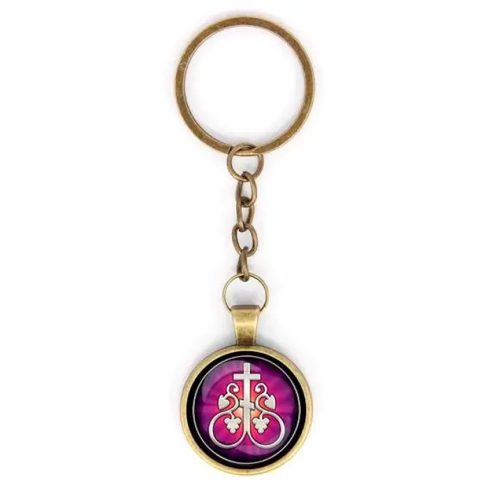 Круглый брелок «Крест Виноградная лоза» — это стильный аксессуар, который привнесет нотку изысканности в повседневную жизнь. Изготовленный из бижутерного сплава с покрытием под бронзу и стекла, он сочетает в себе прочность и элегантность. Размеры брелка (с кольцом и цепочкой) составляют 28х95 мм, что делает его удобным для ношения на ключах или сумке.