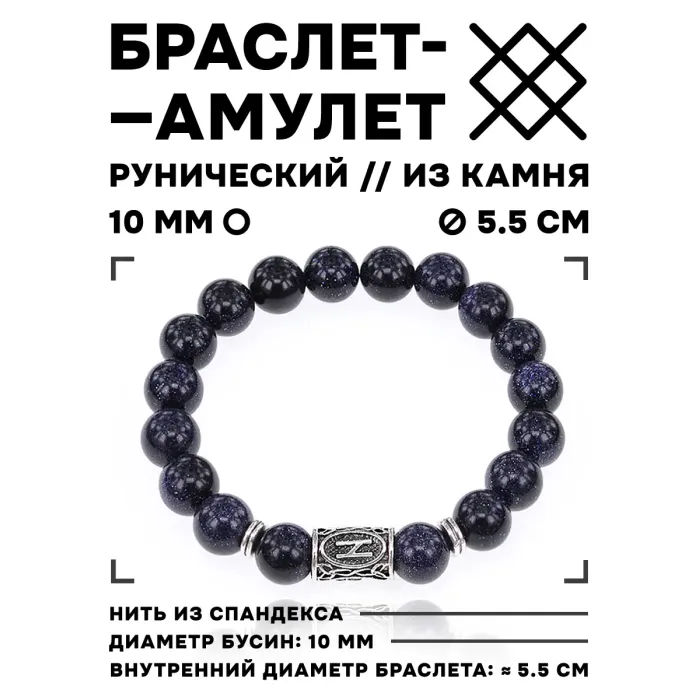 Рунический стрейч-браслет с внутренним диаметром около 5,4 см (5,2 - 5,6 см) станет отличным аксессуаром для тех, кто ценит магические символы и природные камни. Бусины из синего авантюрина диаметром 10 мм известны своими свойствами: они способствуют улучшению памяти, обаяния и красноречия. Руна Хагалаз в этом браслете защищает от негативного воздействия внешней среды и агрессивных факторов. Упаковка включает прозрачный пакет с еврослотом, бархатный мешочек и буклет с описанием значений рун и камней. Браслеты изготавливаются под заказ, что позволяет учитывать индивидуальные предпочтения клиентов.