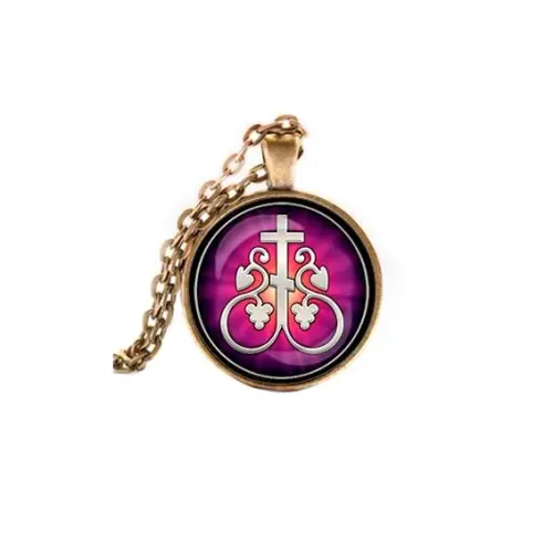 Кулон в форме креста с изображением виноградной лозы — это не только стильный аксессуар, но и символ изобилия и плодородия. Изготовленный из бижутерного сплава с покрытием под бронзу и стекла, он станет отличным дополнением к любому образу.