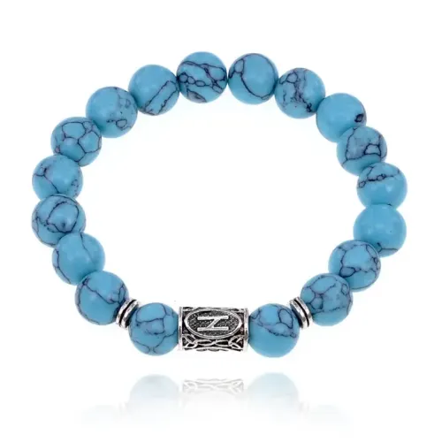 Браслет с руной Хагалаз и синт.камнем Бирюза BSRM-04-05